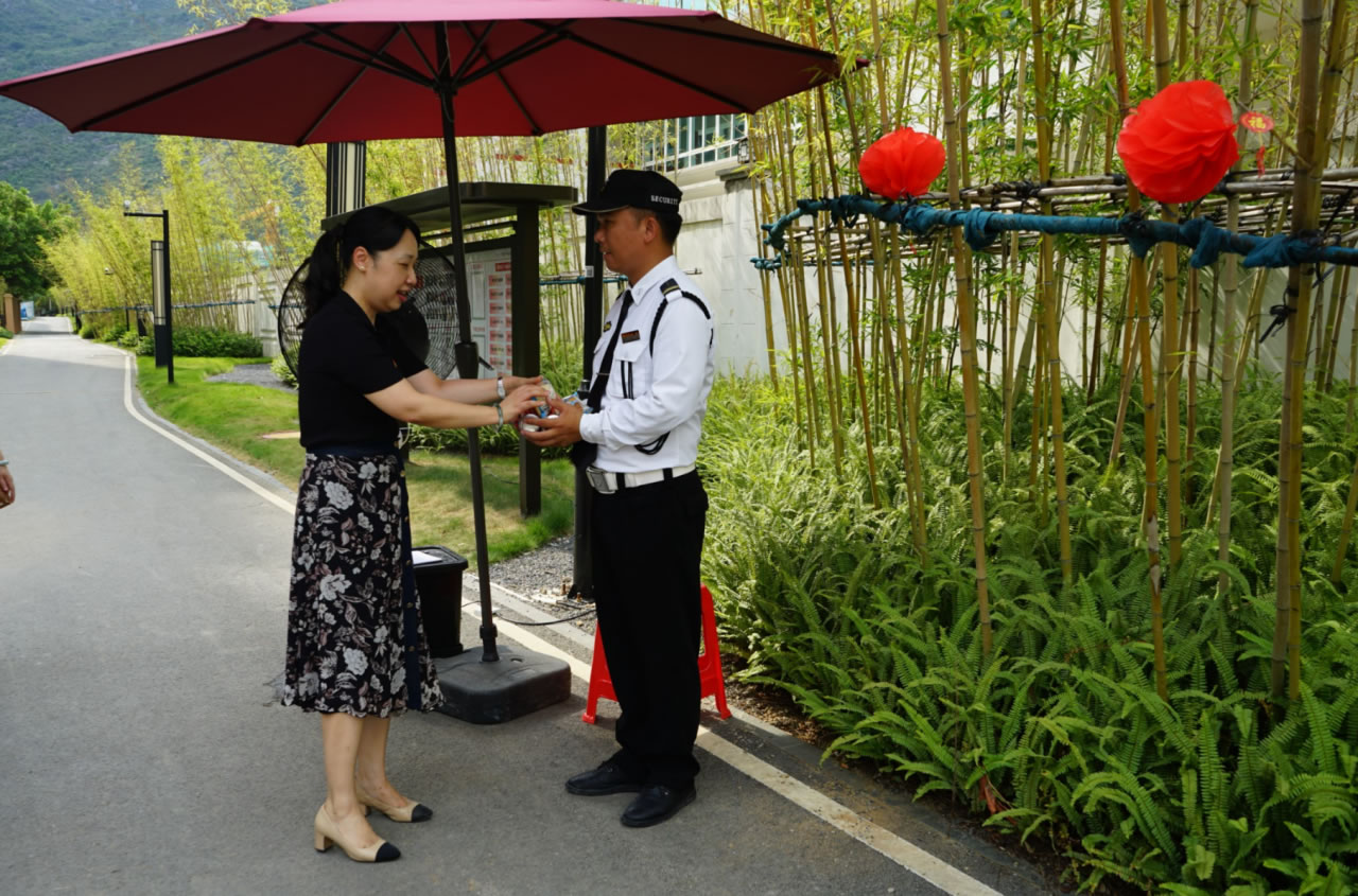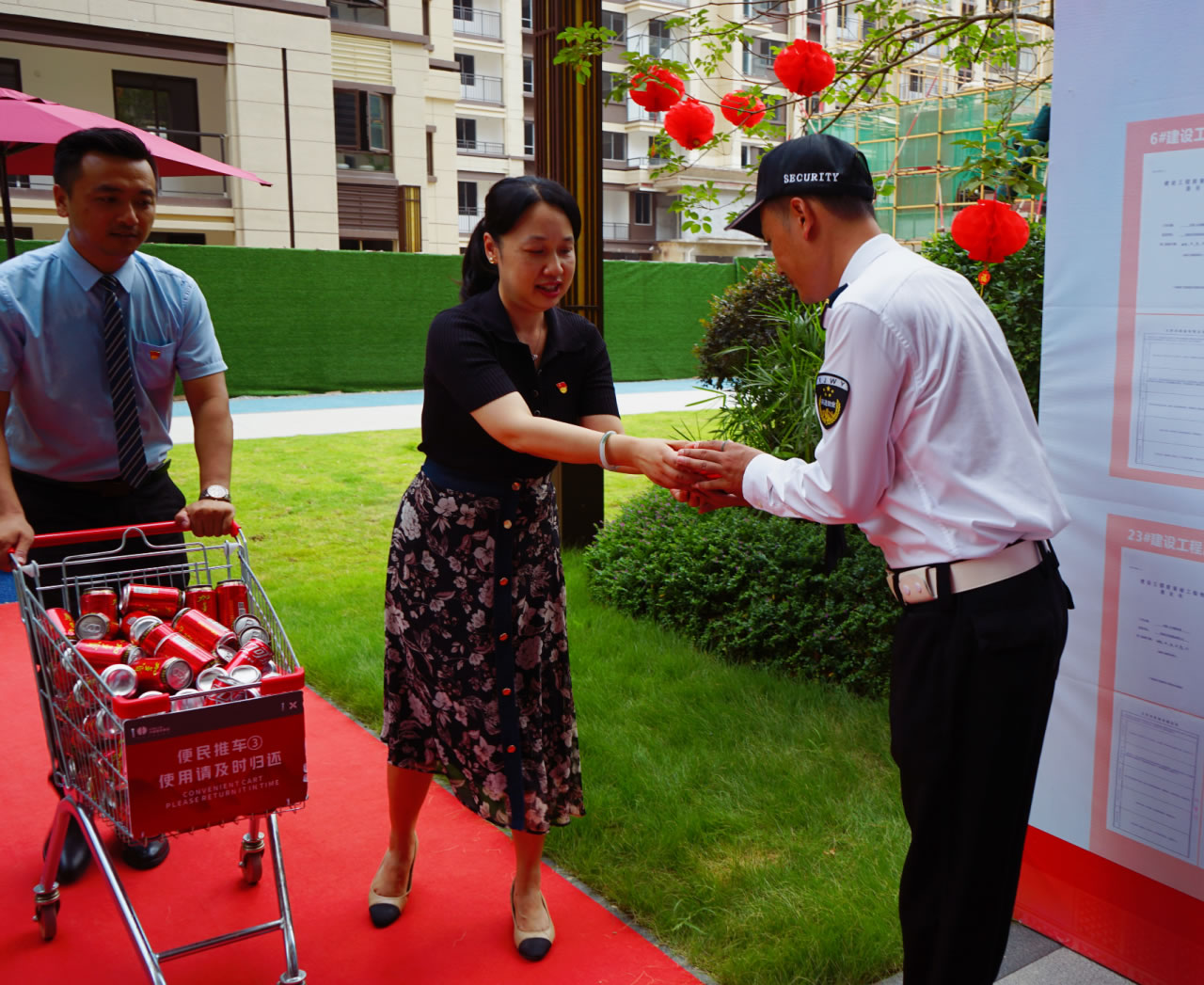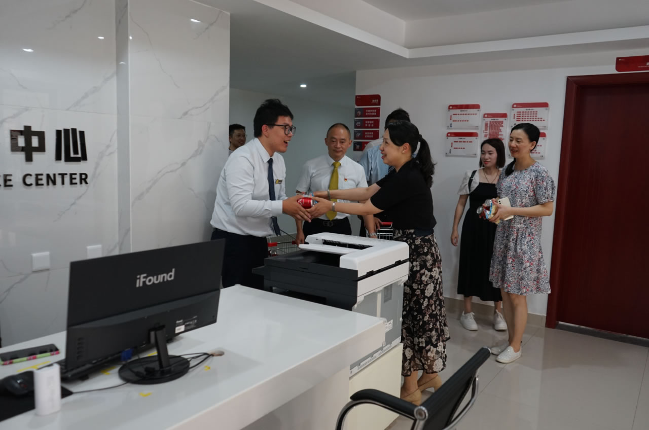 人生就是博集团党支部书记罗捷、集团副总裁王敏、人生就是博物业效劳集团总司理王永忠、集团党支部宣传委员陈健向导党员代表一行,,,,,为奋战在交付一线的项目、物业、营销员工以及集团交房支援职员送去解暑清凉慰问品,,,,,让坚守在岗位的一线员工们感受到丝丝清凉和浓浓眷注。。。